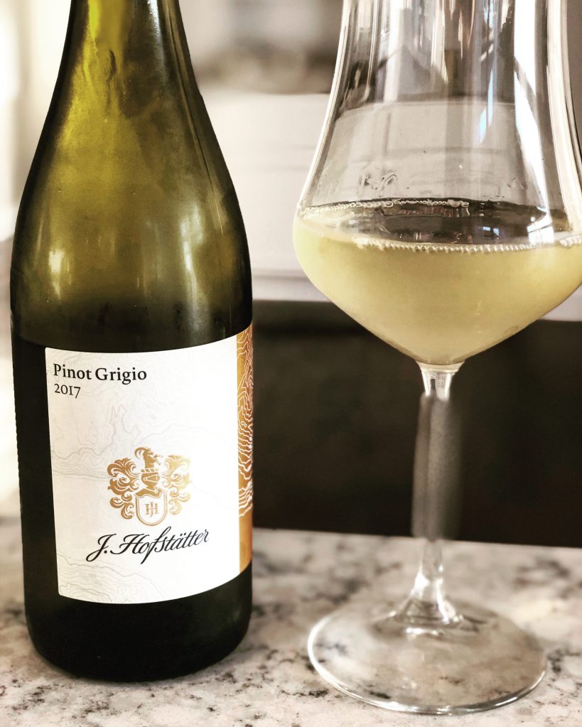 Now that my WSET 2 classes are over, I am continuing my wine studies by reading several wine books. While reading about Italy in The Wine Bible by Karen MacNeil, she wrote about a style of pinot grigio found in the Alto Adige wine region. While reading about the wines produced in this region, the descriptions spoke to me. On my next wine shopping excursion I found J. Hofstätter Pinot Grigio 2018 IGT from Tramin-Termeno in the Alto Adige. This area is the northernmost wine region in Italy and is known for growing pinot grigio among other white wine grapes. 62% of the wine produced here is white, but based on the protection from the Alps and the warming influences from both the Mediterranean Sea and Lake Garda it’s possible for black grapes to fully ripen here as well.